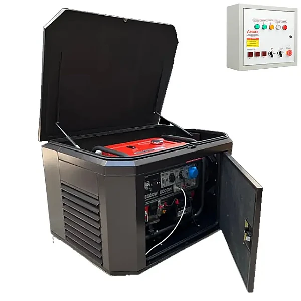 Генератор A-iPower A9000EAX в супертихом зимнем кожухе 1400SS RAL 8019 + блок автозапуска A-iPower 230В/400В 100А 8 ПИН