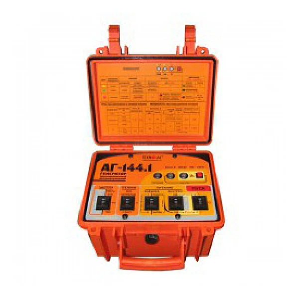 Генератор трассировочный автоматический АГ-144.1 предназначен для создания распространяющихся сигналов в трассах скрытых коммуникаций при активных методах трассопоиска (электромагнитном и акустическом). Прибор создает в исследуемой коммуникации переменный синусоидальный ток необходимый для определения ее местоположения или звуковые импульсы при помощи ударного механизма.
