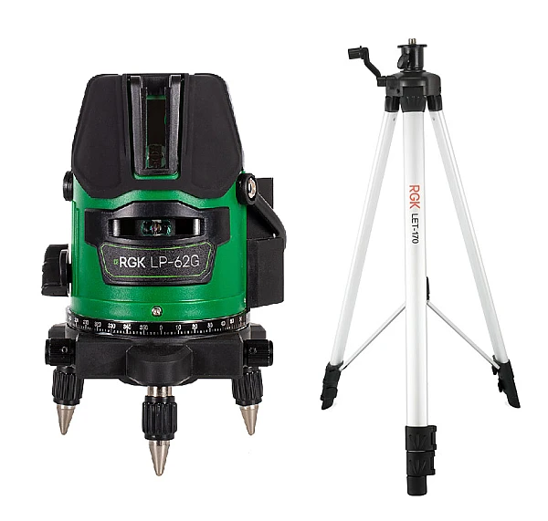 Купить Лазерный уровень RGK LP-62G + штатив RGK LET-170 в Набережных Челнах легко — просто позвоните по телефону: 8-800-551-11-01