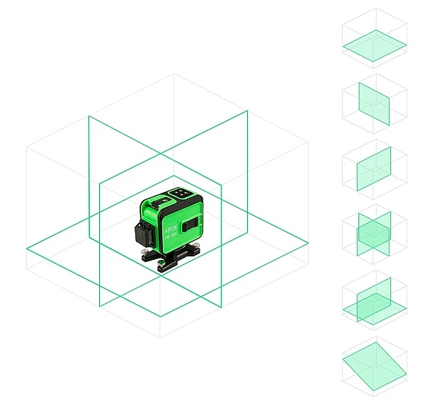 Лазерный нивелир RGK PR-38G - это уровень с 3 замкнутыми плоскостями для выполнения строительных, отделочных и дизайнерских работ в помещениях и за их пределами. Прибор проецирует 1 горизонтальный луч на высоте 2.3 см от пола и 2 взаимно перпендикулярных вертикальных. Зеленые лучи обладают лучшей видимостью в сравнении с красными, особенно в условиях хорошей освещенности. При точности ±0,2 мм/м рабочая дальность составляет 20 м, она может быть увеличена до 50 м при использовании приемника.