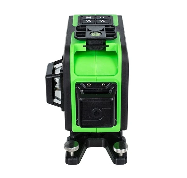 С помощью пульта ДУ можно заблокировать стабилизатор, переключить плоскости либо же отключить их вовсе. Раскладка дублирует кнопки на лазерном уровне во избежание ошибок. Для упрощения идентификации лучей на засвеченных стенах в набор входят зеленые очки.