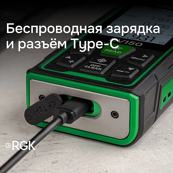 Дальномер RGK DV150 оснащен мощным лазером, который позволяет измерять расстояния на удалении до 150 метров с двухмиллиметровой точностью, что позволяет работать не только в помещениях, но и на улице. Отличительной особенностью дальномера RGK DV150 является наличие яркого лазерного маркера, облегчающего наведение на цель.