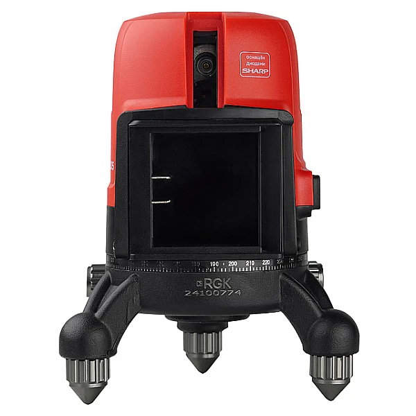 Мощный литой трегер с подъемными ножками помогает быстро вставить устройство в горизонт. Трегер снабжен винтами для плавной и точной подстройки положения вертикалей, в чем также помогает лимб с разметкой на 360 градусов.