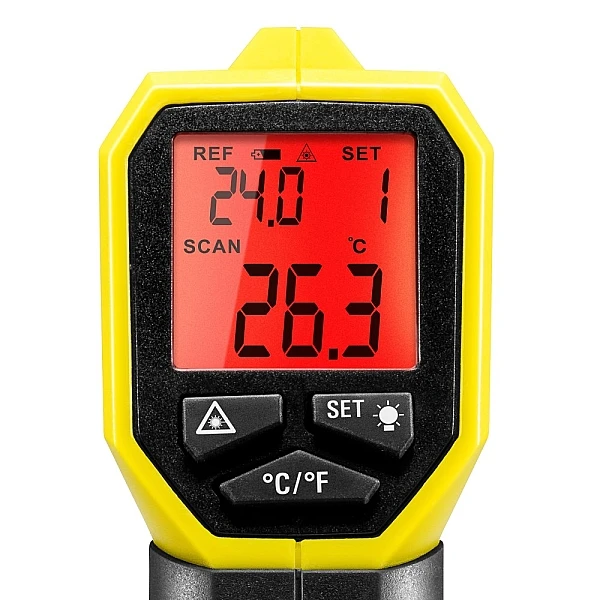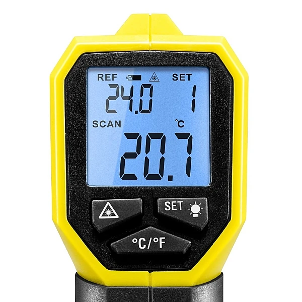 Мониторинг температуры поверхности электрических устройств, двигателей, систем охлаждения или стен является важной задачей при оценке энергоэффективности. Непрерывное измерение температуры часто позволяет избежать больших повреждений и дорогостоящих восстановительных работ. Поскольку не нужно прикасаться к поверхностям, которые могут быть слишком горячими или холодными, пользователь будет в безопасности при проведении измерений инфракрасным методом. Trotec BP17 надежный и точный пирометр для измерения температуры поверхности. Его инфракрасный датчик позволяет измерять температуру в широком диапазоне от -50 °C до +380 °C. Вы можете заранее определить эталонную температуру, а возможные отклонения можно указать и затем контролировать с помощью визуальных и акустических сигналов тревоги. При настройке диапазона допуска вы можете выбрать между 1°C, 3°C и 5°C. Прибор оснащен лазерным целеуказателем который указывает центр измеряемого пятна поверхности (оптическое разрешение 10:1). Большой дисплей с подсветкой гарантирует превосходный обзор измеренных значений даже при плохом освещении, а современный эргономичный дизайн с удобной рукояткой обеспечивает удобное управление. Когда устройство не используется, оно автоматически отключается, таким образом, снижает и так низкое энергопотребление. С помощью удобной сумки на ремне можно удобно носить пирометр и всегда иметь его под рукой.