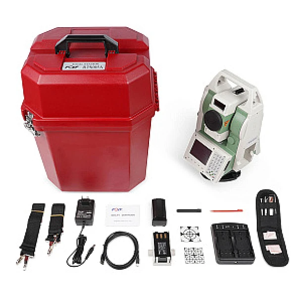 Комплект электронного тахеометра RTS005A помещается в ударопрочный кейс и состоит из самого необходимого для решения большинства задач. Это и 2 аккумулятора повышенной емкости, инструменты для юстировки и обслуживания, 2 стилуса для управления сенсорными экранами, кабеля для передачи данных и прошивки прибора, чехол от осадков, защитная крышка на объектив.