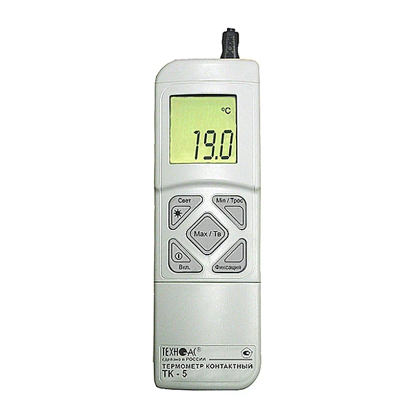 Термометр контактный цифровой "ТК-5.06" предназначен для измерения температуры различных сред, относительной влажности воздуха путем непосредственного контакта зонда с объектом измерения. При использовании зондов влажности в термометрах предусмотрена возможность расчета температуры точки росы по формуле Гоффа - Грэтча. Термометры контактные состоят из электронного блока и сменных зондов. В качестве термочувствительных элементов в зондах используются преобразователи термоэлектрические (ТП) с НСХ по ГОСТ Р 8.585. В качестве измерительного элемента в зондах относительной влажности используются емкостные датчики влажности.