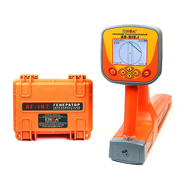 Комплект оснащен новейшим компактным автономным генератором АГ-107 со встроенными элементами питания, дисплеем и встроенной индукционной антенной, для трассировки коммуникации бесконтактным способом.