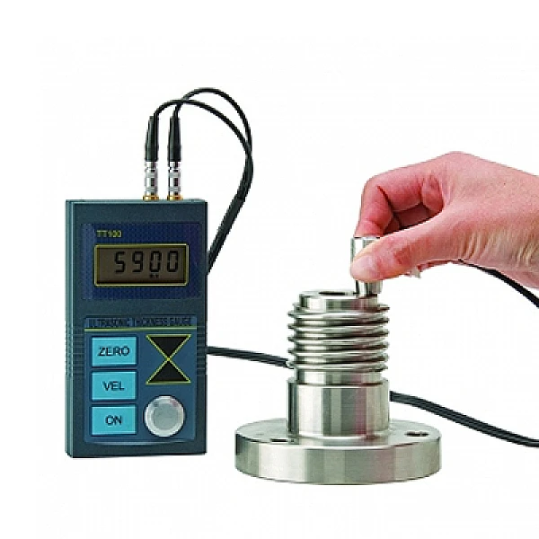 Ультразвуковой толщиномер TT 100 - полностью самокалибрующийся высокоточный прибор, измеряющий толщины изделий из металлов и их сплавов (в том числе цинка, железа, стали, алюминия и т.д.), пластмассы, керамики, стекла и других материалов до 300 мм с шагом 0.1.